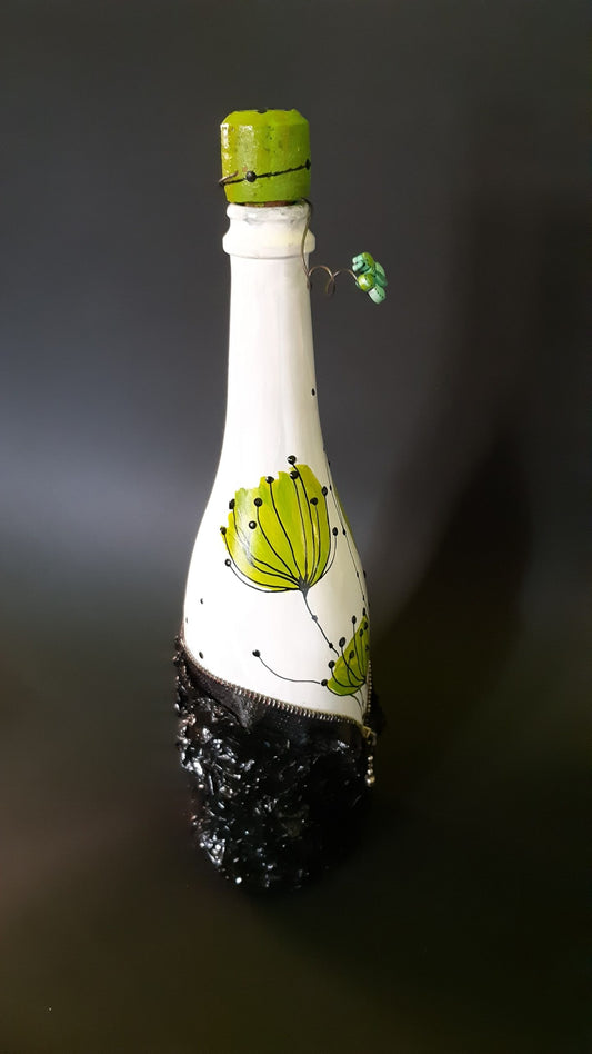 Bottiglia dipinta foglie